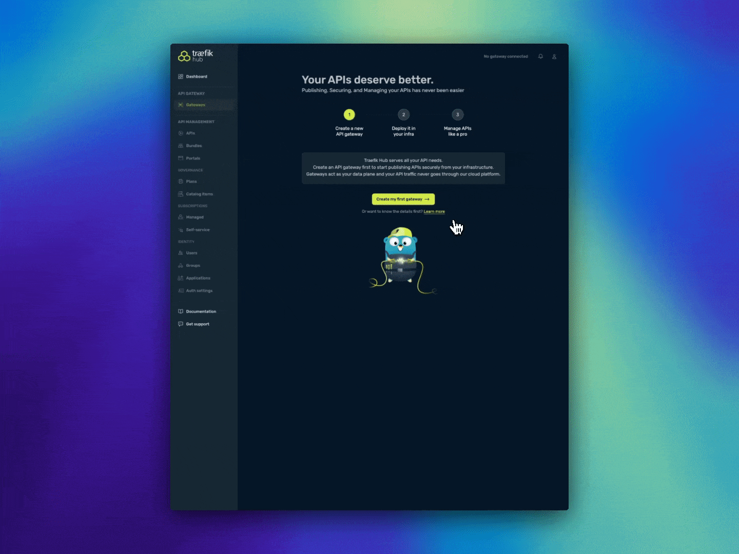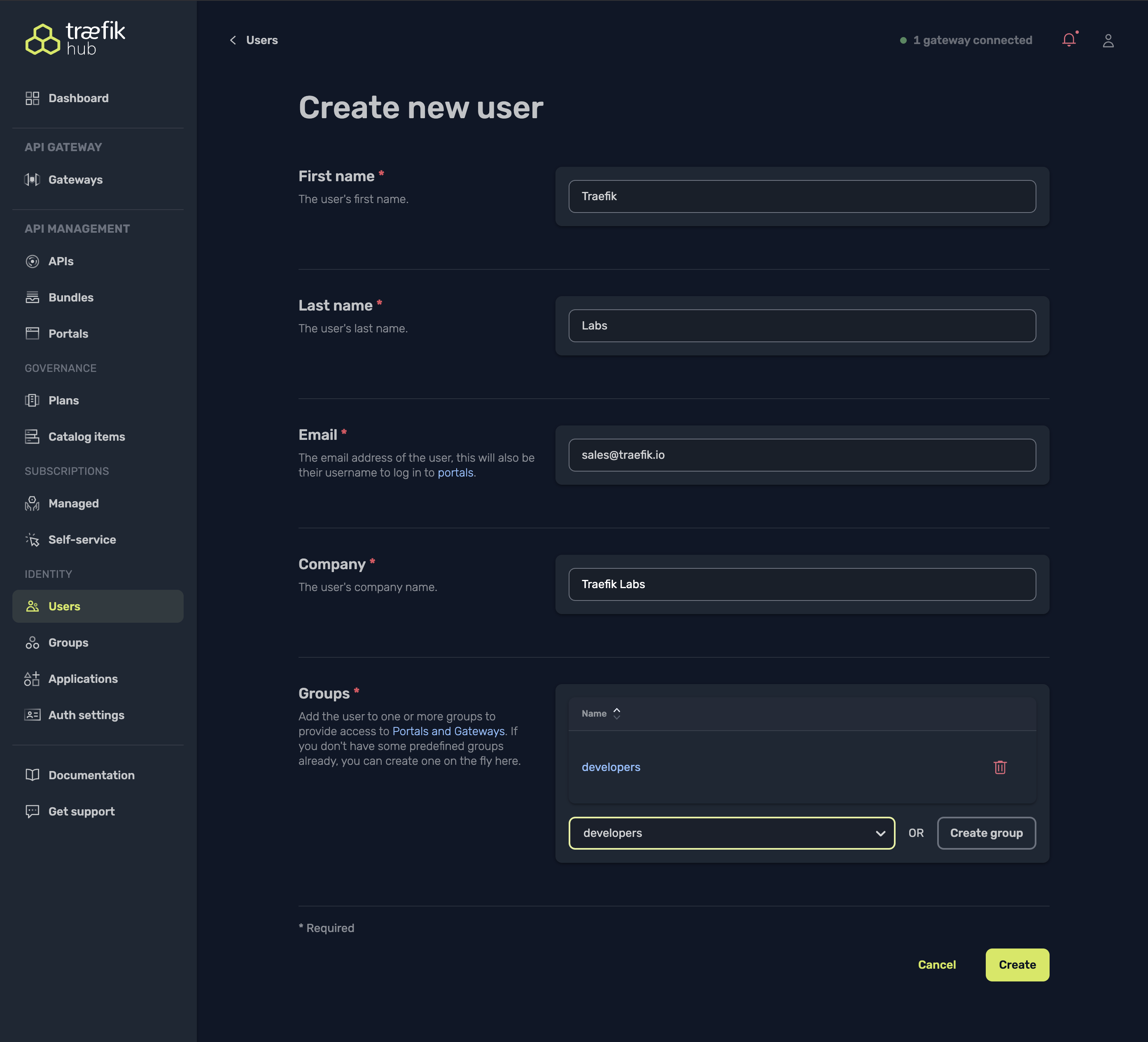 - Visit Create New Gateway to create your new gateway. If you don't yet have a Traefik Hub account, please reach out to our sales team.