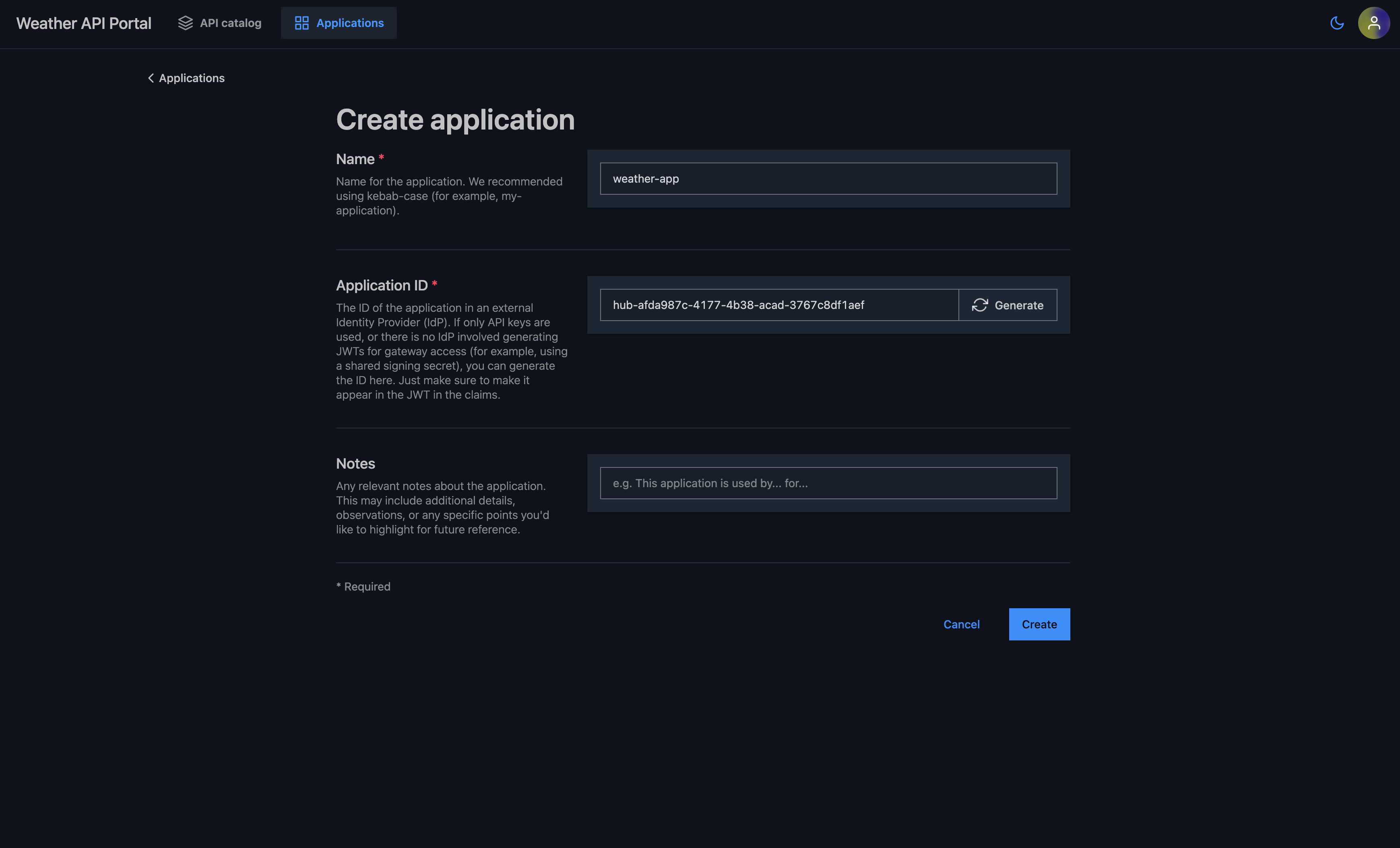 generate an application ID by clicking on "Generate" beside the application ID field