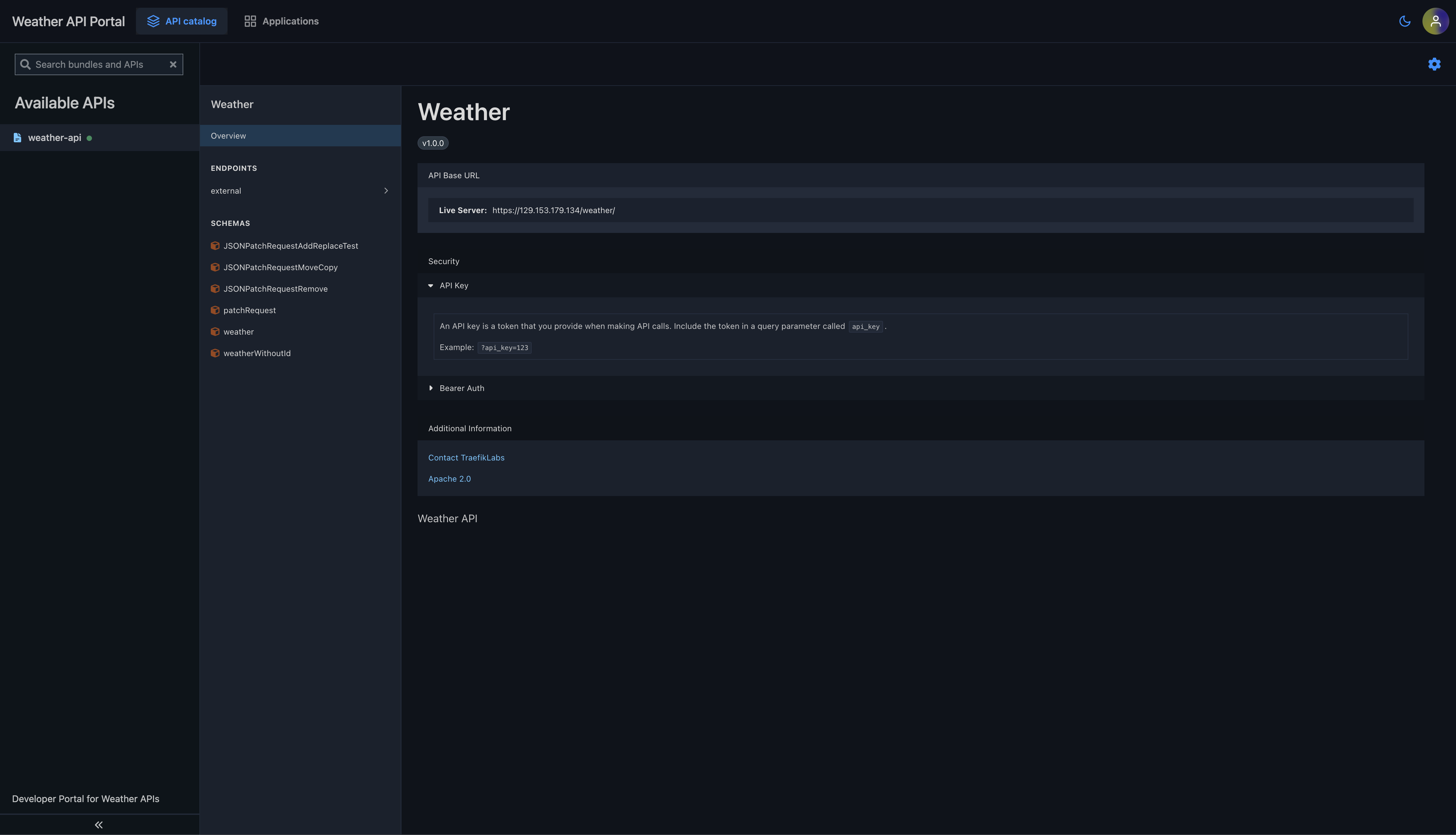 apicatalogitem.hub.traefik.io/weather-api-catalog created