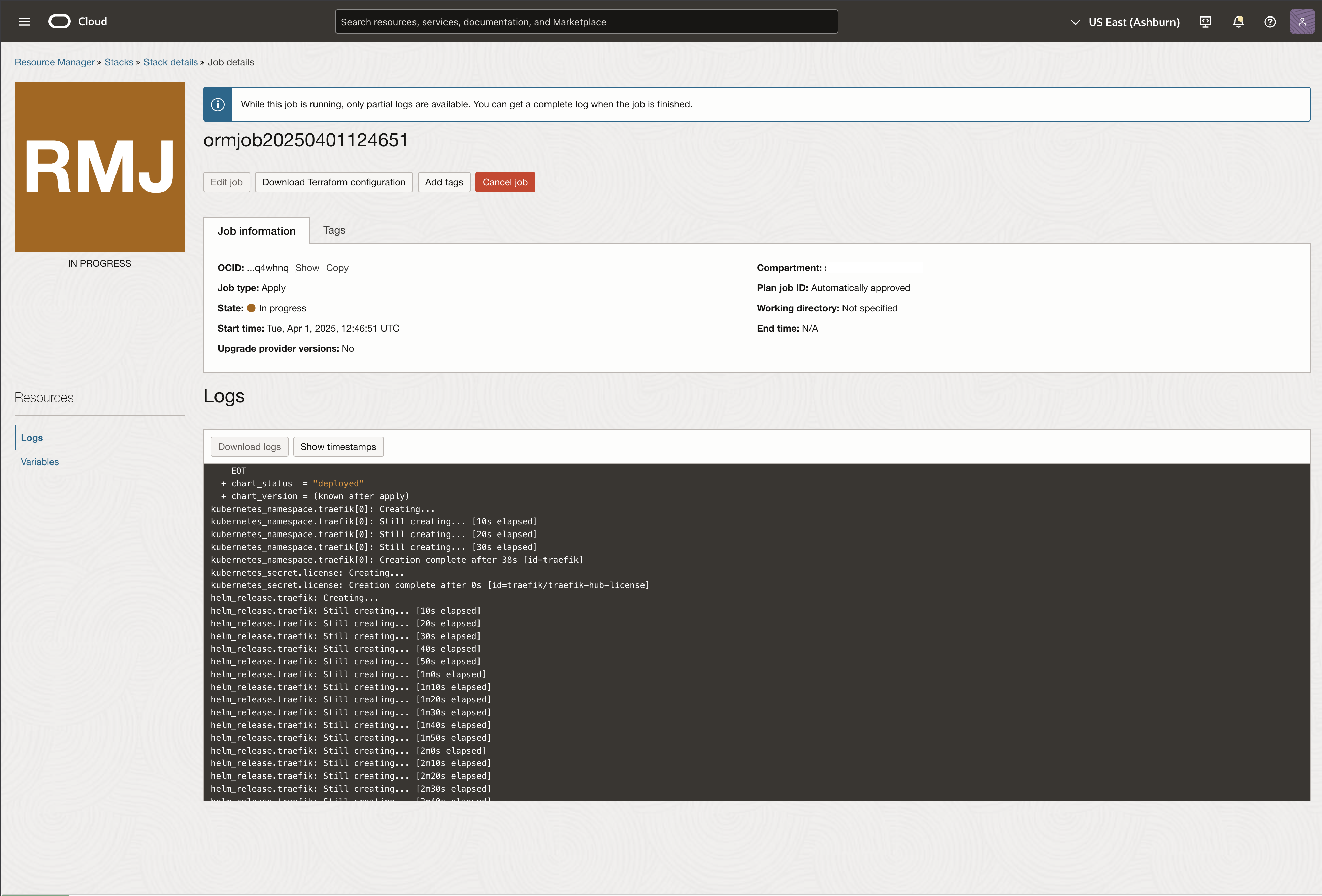 Monitor the deployment progress in the Stacks job page:
