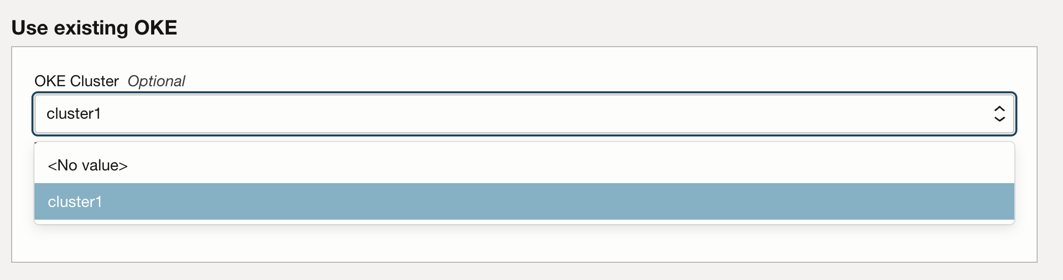 In the Use existing OKE section, you can select your preferred cluster for the deployment from the dropdown menu.