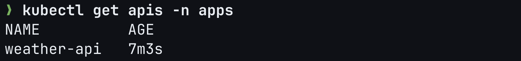First, create a namespace for your API and deploy the sample weather API: