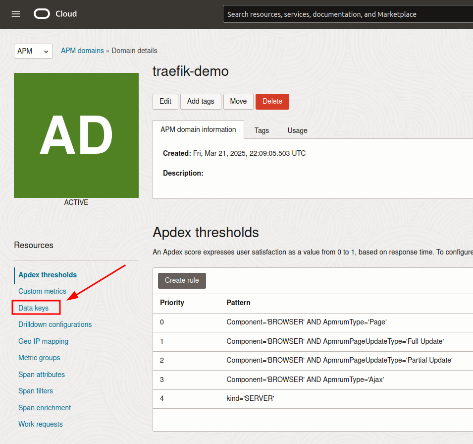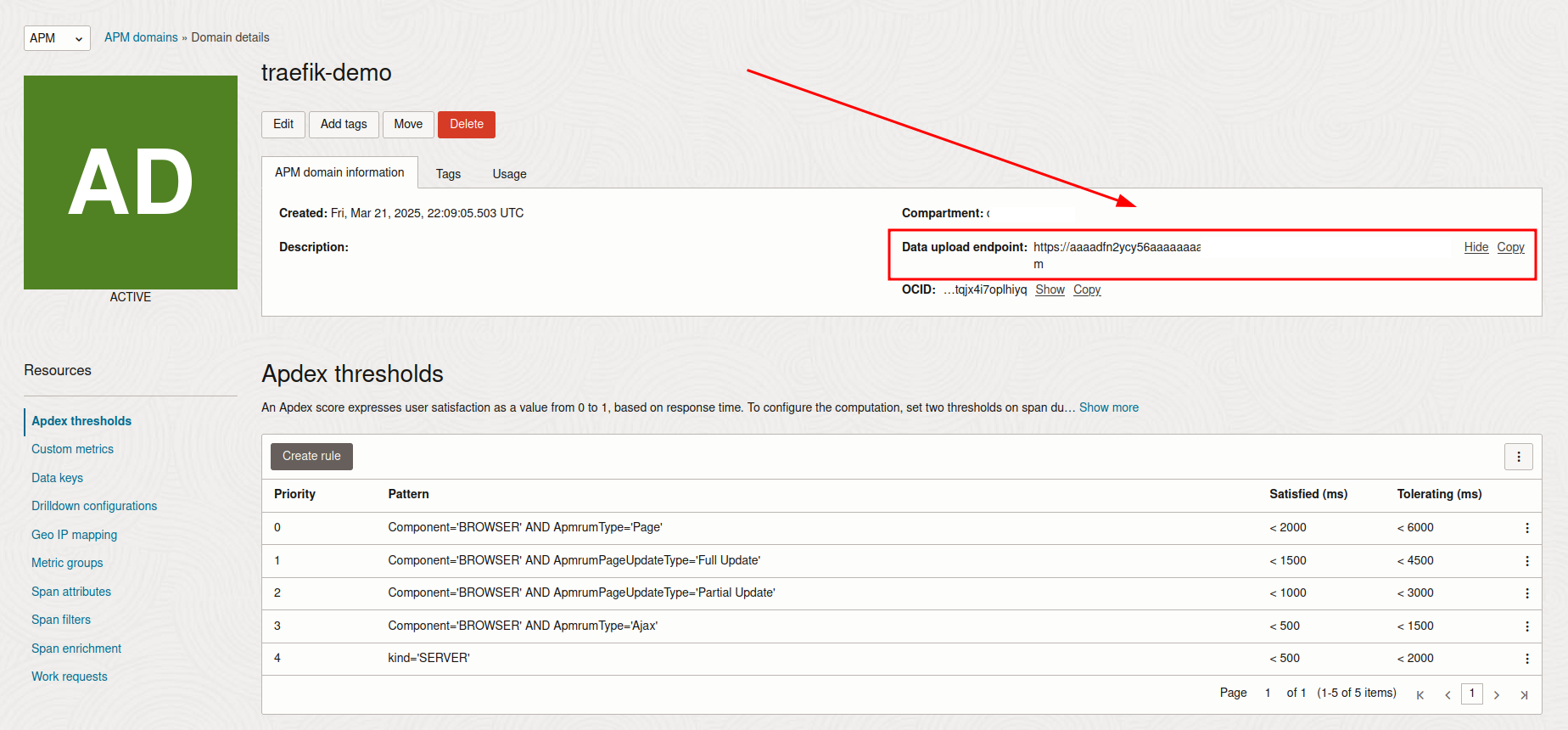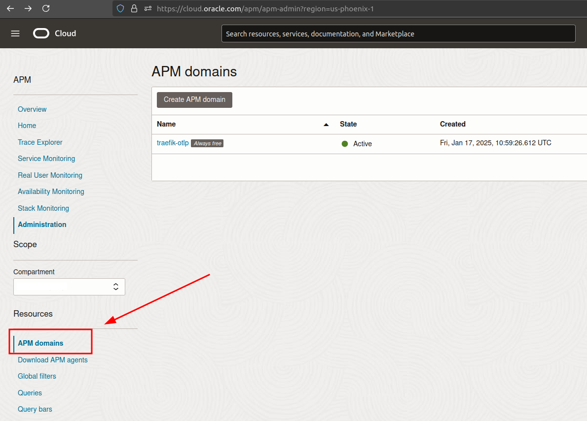 - Verify the APM Domain status is Active in the OCI Console