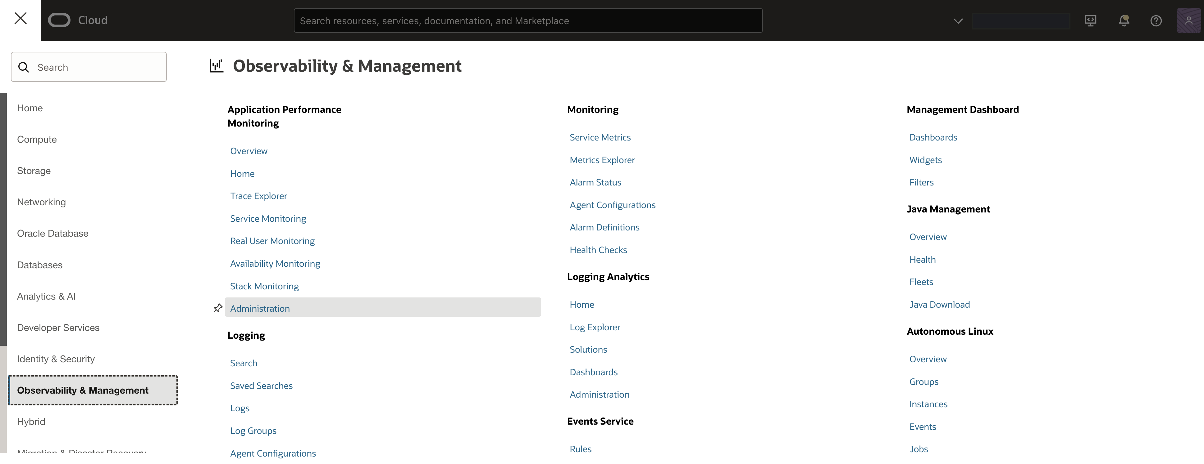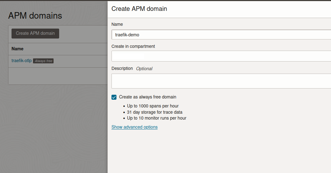 - Navigate to Observability & Management >> Administration >> APM Domain
