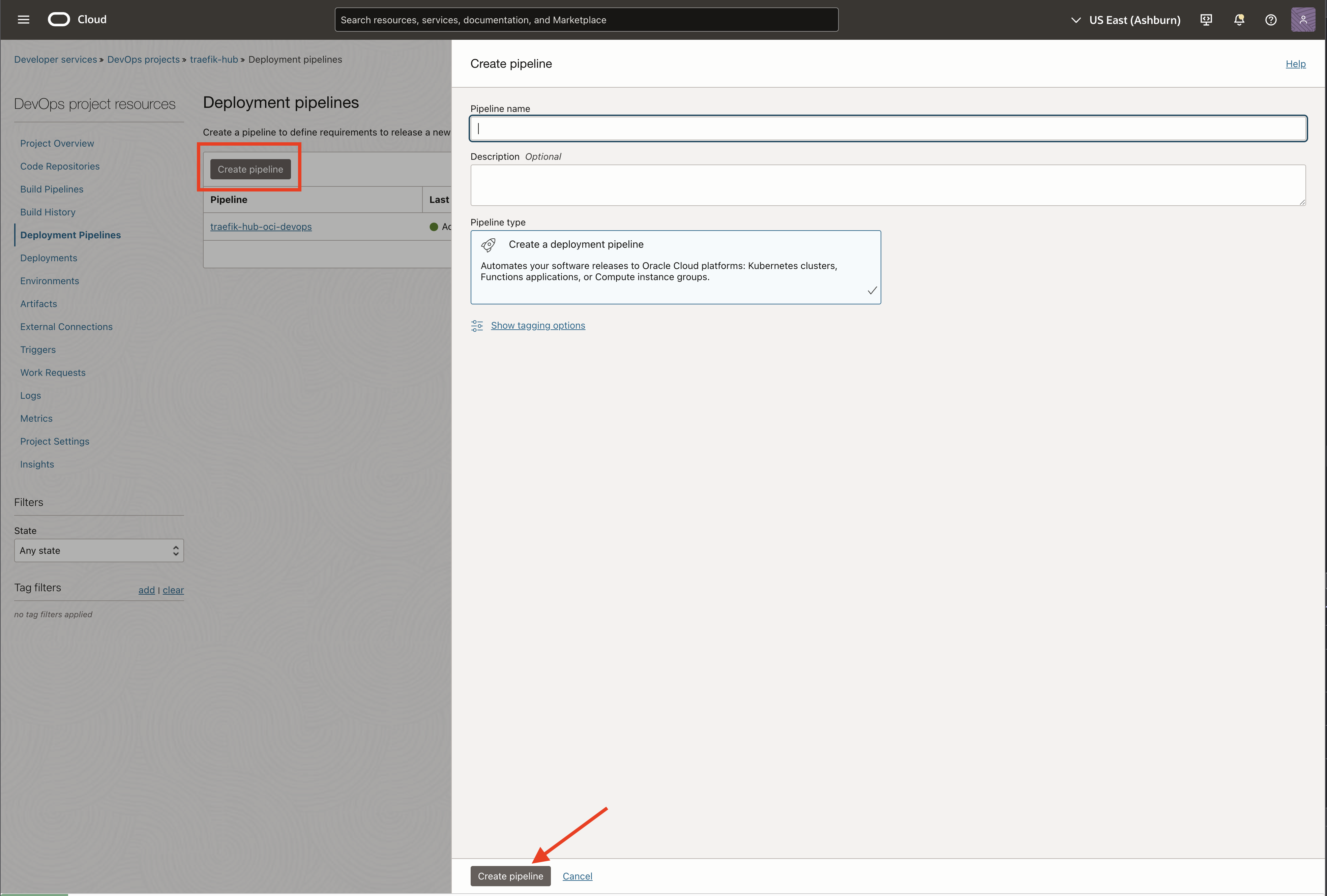 To create your Traefik Hub deployment pipeline, select Deployment Pipelines in the side menu and then select Create Pipeline.