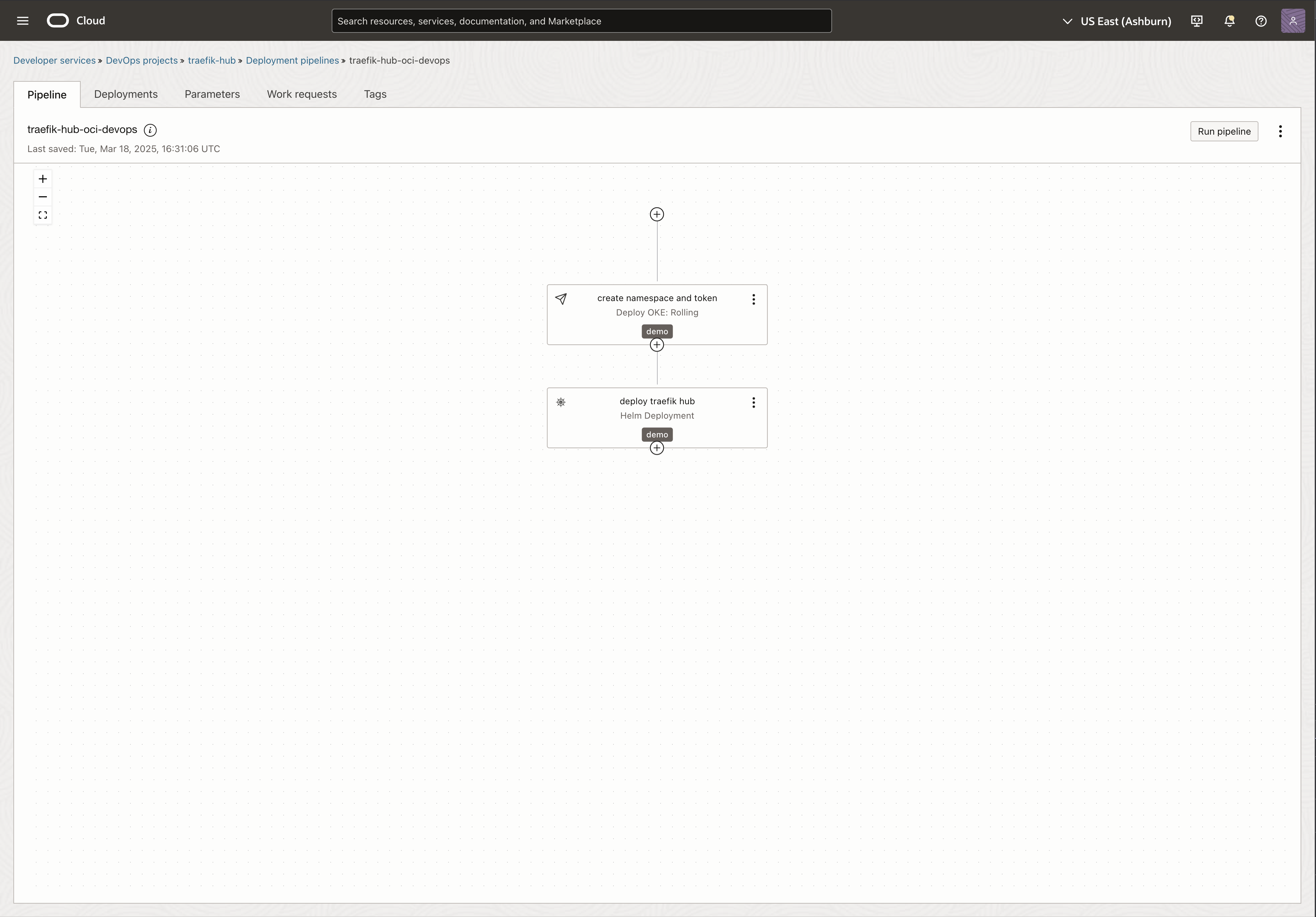 traefiknamespace and a Kubernetes secret to store the Traefik Hub license token. - Stage 2–Helm Chart Deployment: Deploys the Traefik Hub Helm chart from OCIR and applies the custom Helm chart values.