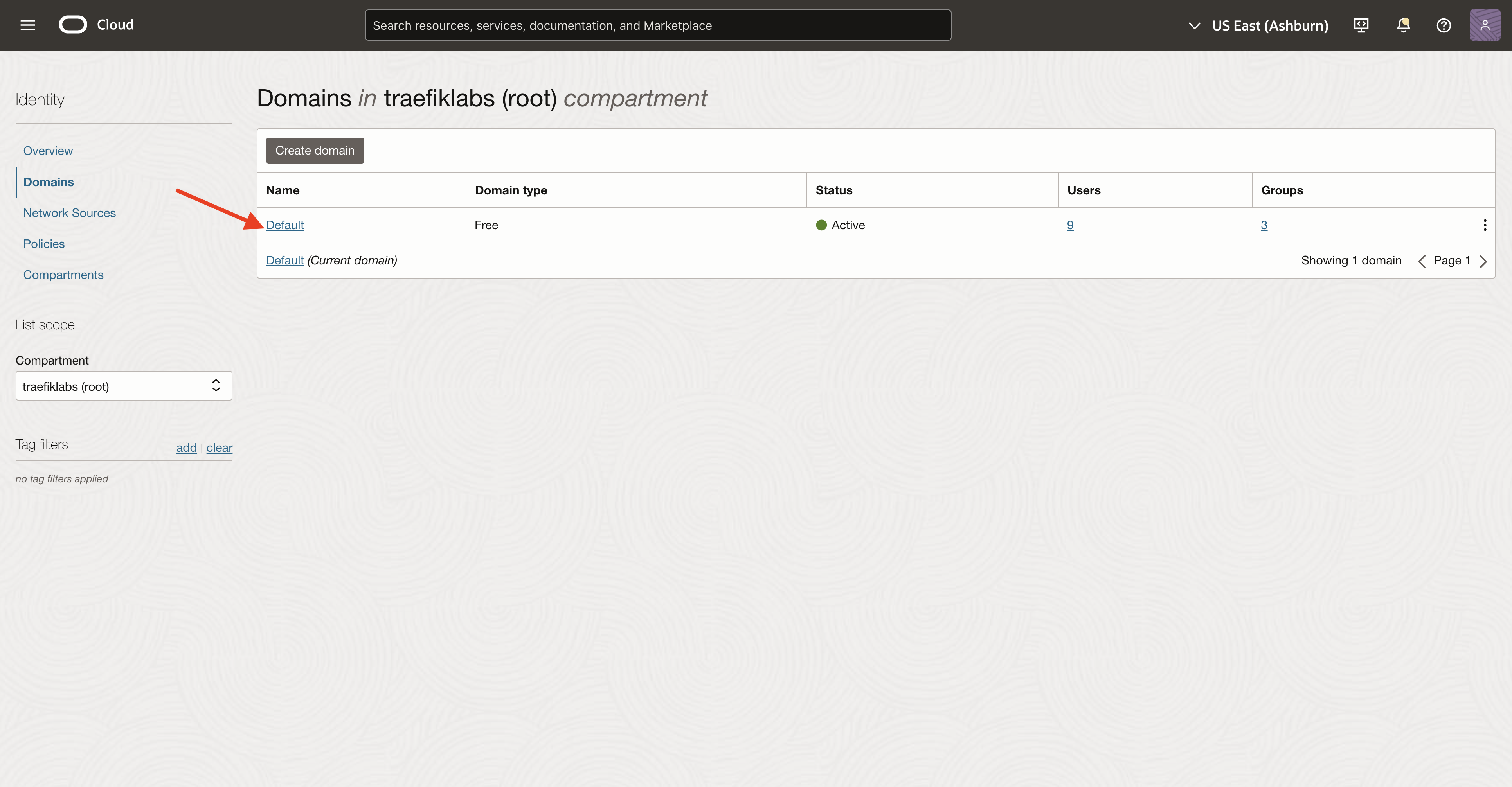 Select your default domain and navigate to Dynamic groups to create a new Dynamic Group.