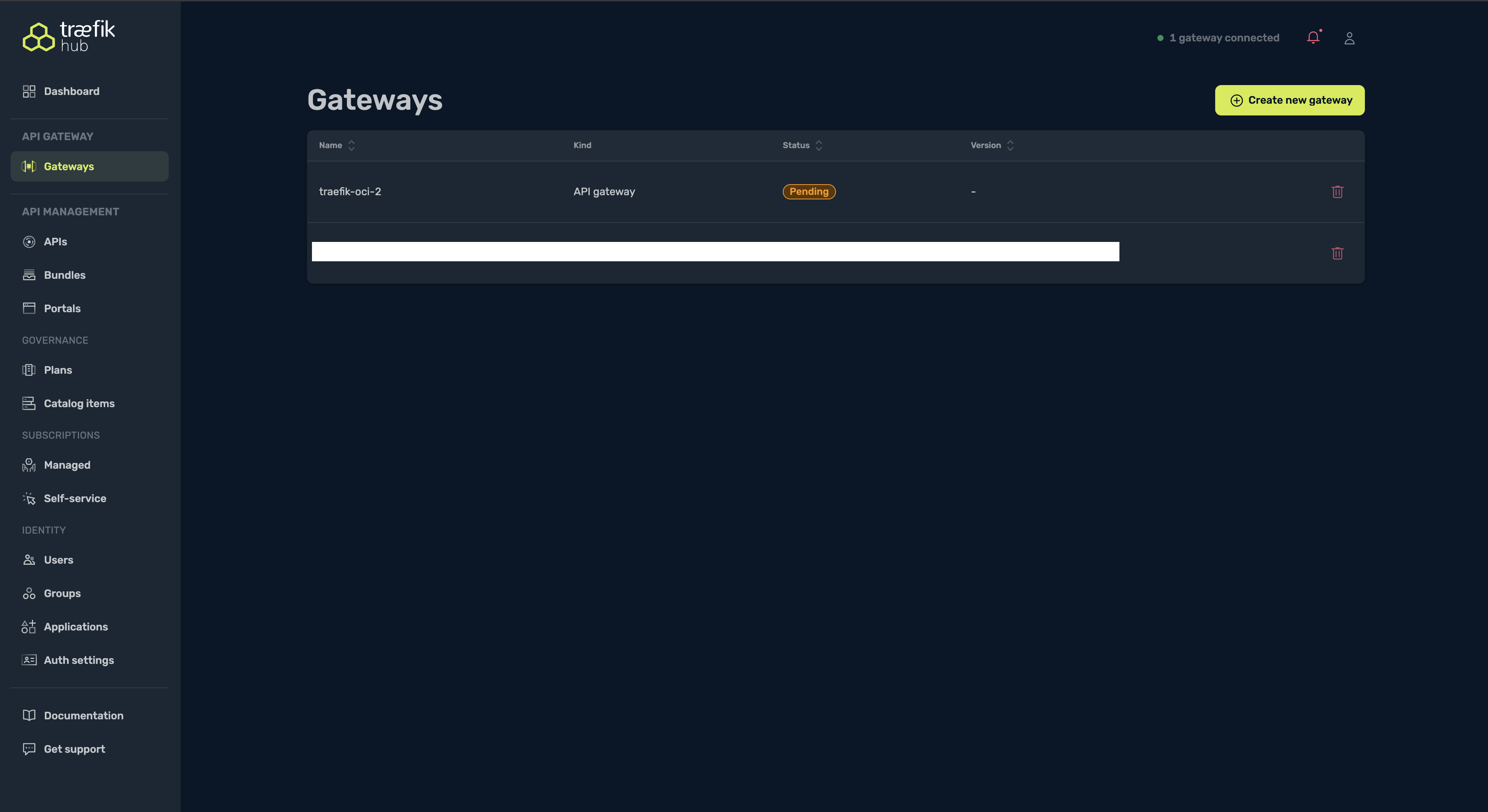 Visit https://hub.traefik.io/gateways/new to create your new gateway and obtain your Traefik Hub license token.