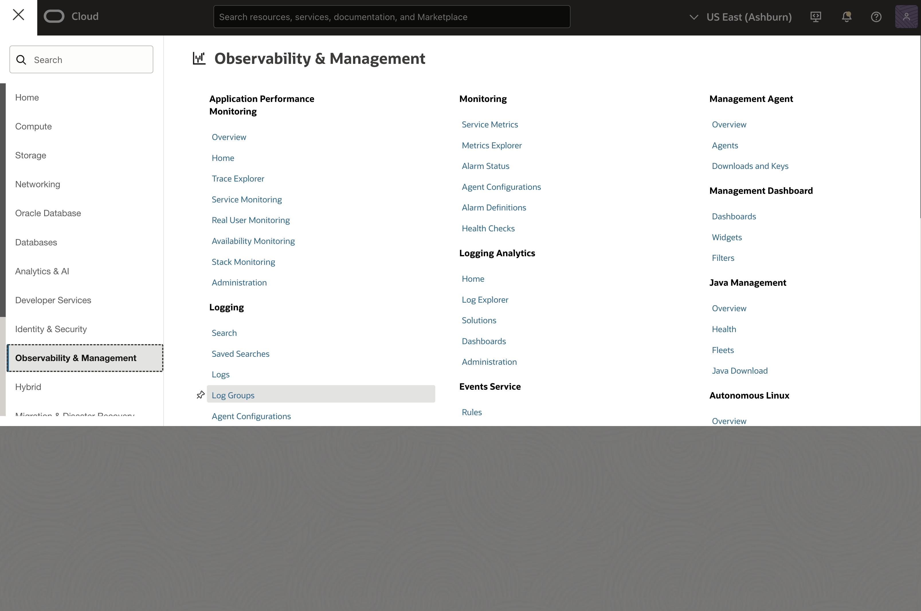 Create a log group before enabling logging for the DevOps project. Navigate to Observability & Management > Log Groups.