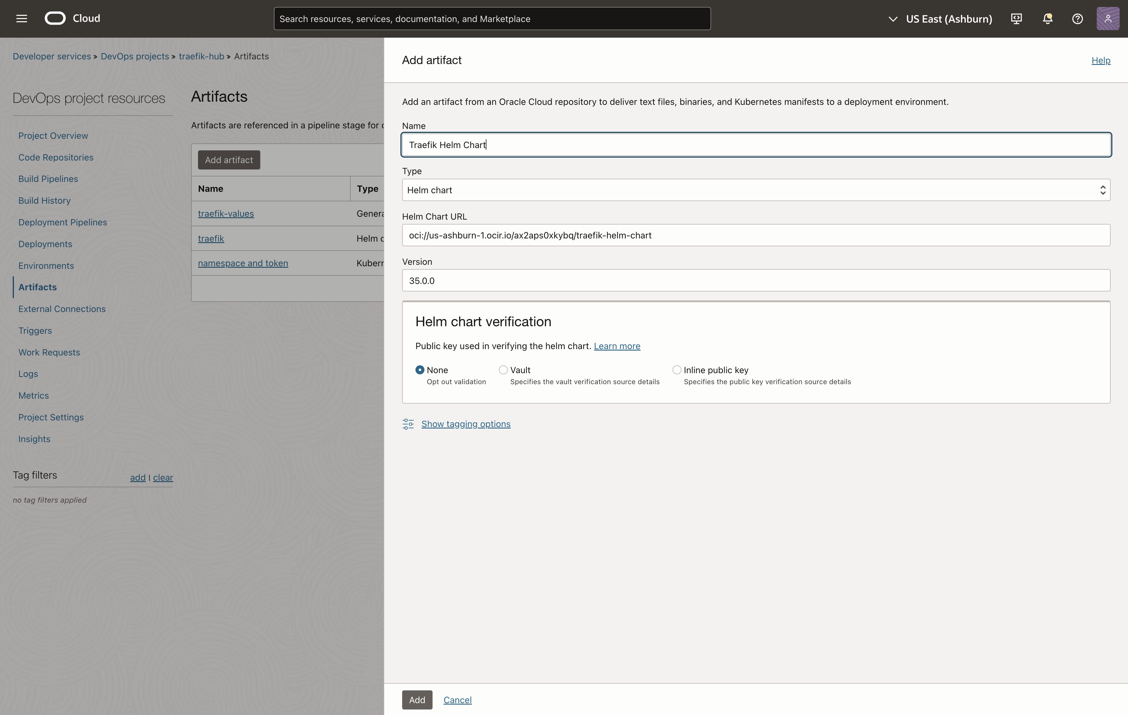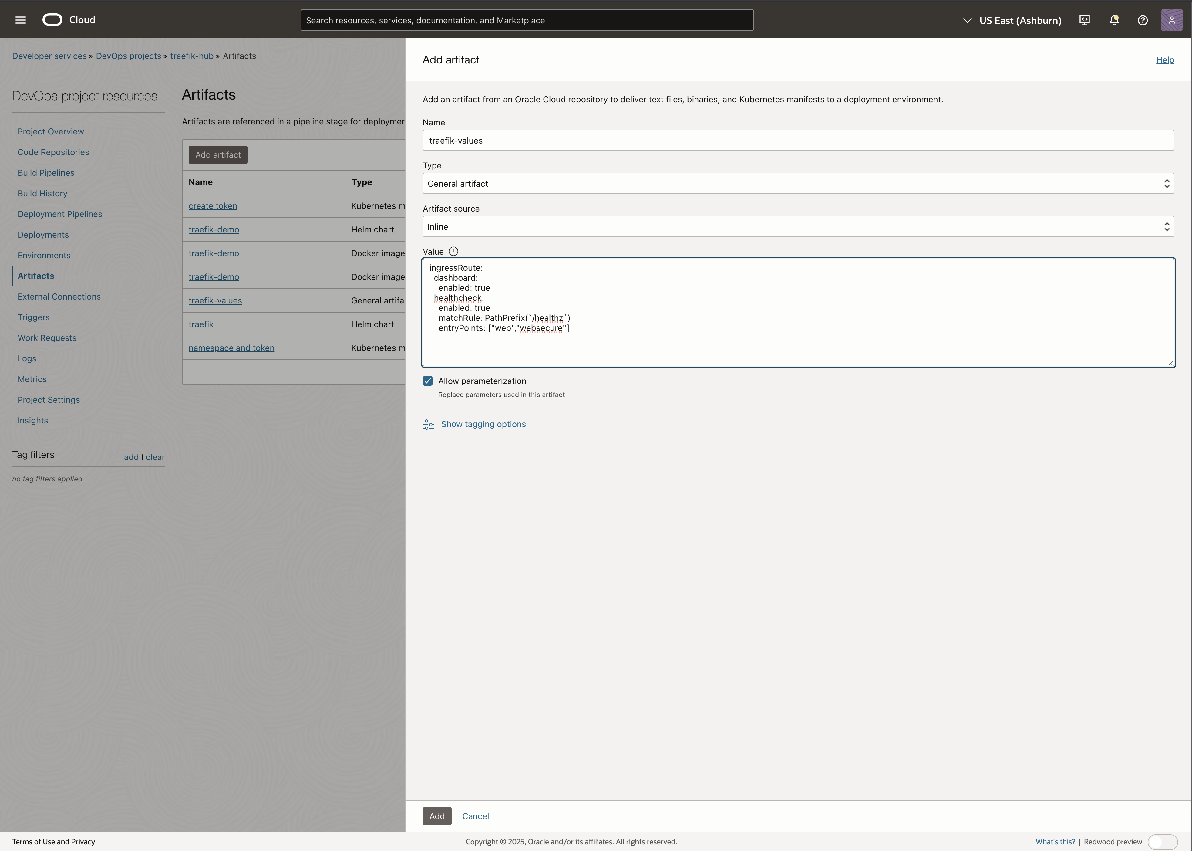 Before selecting Add to create the new artifact, verify that you have replaced <YOUR_TRAEFIK_HUB_TOKEN> with a valid Traefik Hub token.